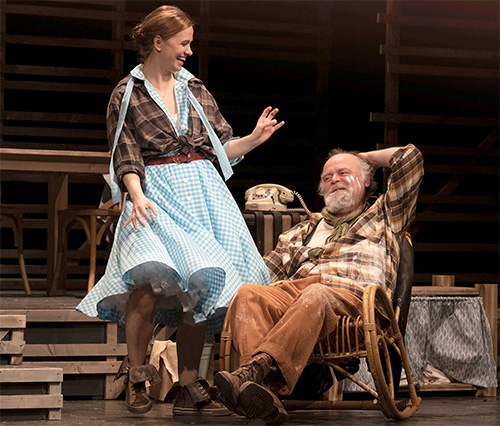 Zuzana Vejvodová (Líza Curryová) a Igor Bareš(H. C. Curry, rančer) v romantické komedii Obchodník s deštěmJako „romantickou komedii“ označil americký dramatik a filmový scenárista N. Richard Nash svého Obchodníka s deštěm při newyorské premiéře v roce 1954.