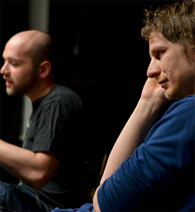 Lukáš Mathé (vpravo) na čtené zkoušceLukáši, co všechno obnáší tvoje pracovní pozice a jak vypadá tvůj pracovní den?