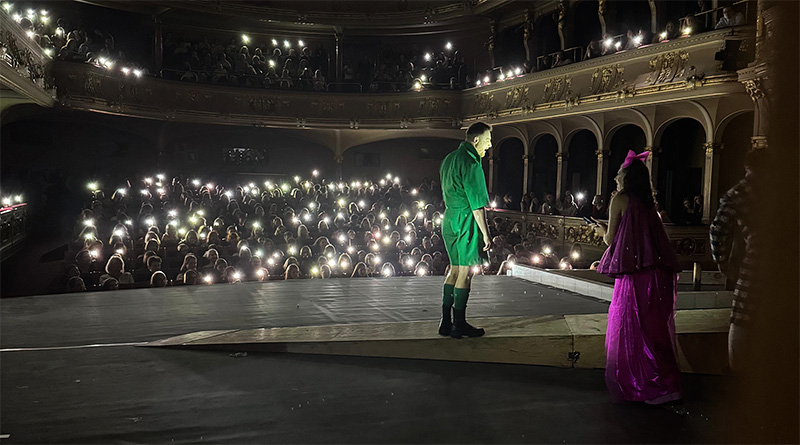 Díky světlu mnoha baterek a displejů mobilních telefonů mohlo představení pokračovat a v hledišti i na jevišti vznikla nenapodobitelná atmosféra.