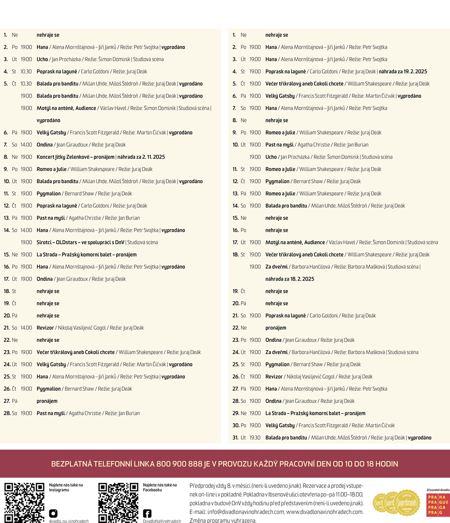 Divadelní měsíčník, vydává Divadlo na Vinohradech