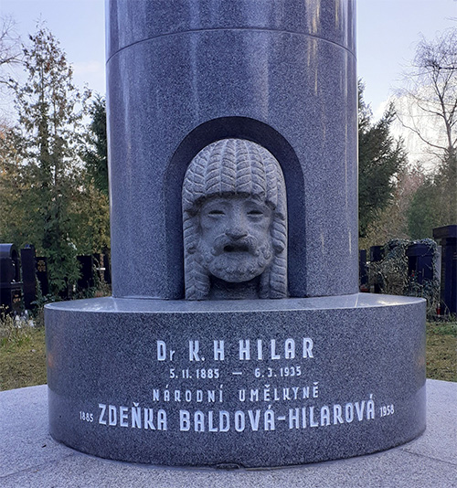 Opravený pomník režiséra K. H. Hilara a herečky Z. Baldové