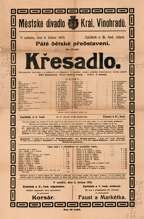 A nyní nostalgicky: tyto cedule (mnohé ještě z doby před první světovou válkou), na nichž je uveden titul, který se toho dne bude hrát a jeho herecké obsazení, a ještě několik informací, které bychom dnes označili jako marketingové, střežíme v zákulisí a v archivu jako oko v hlavě. Jejich sbírkou, katalogizací a užitím pro dějiny českého divadla a jeho souborů se zabývá Divadelní oddělení Národního muzea, náš archivář J. Brožek s ním čile spolupracuje. Je to lidsky dojemný a badatelsky cenný zdroj informací.